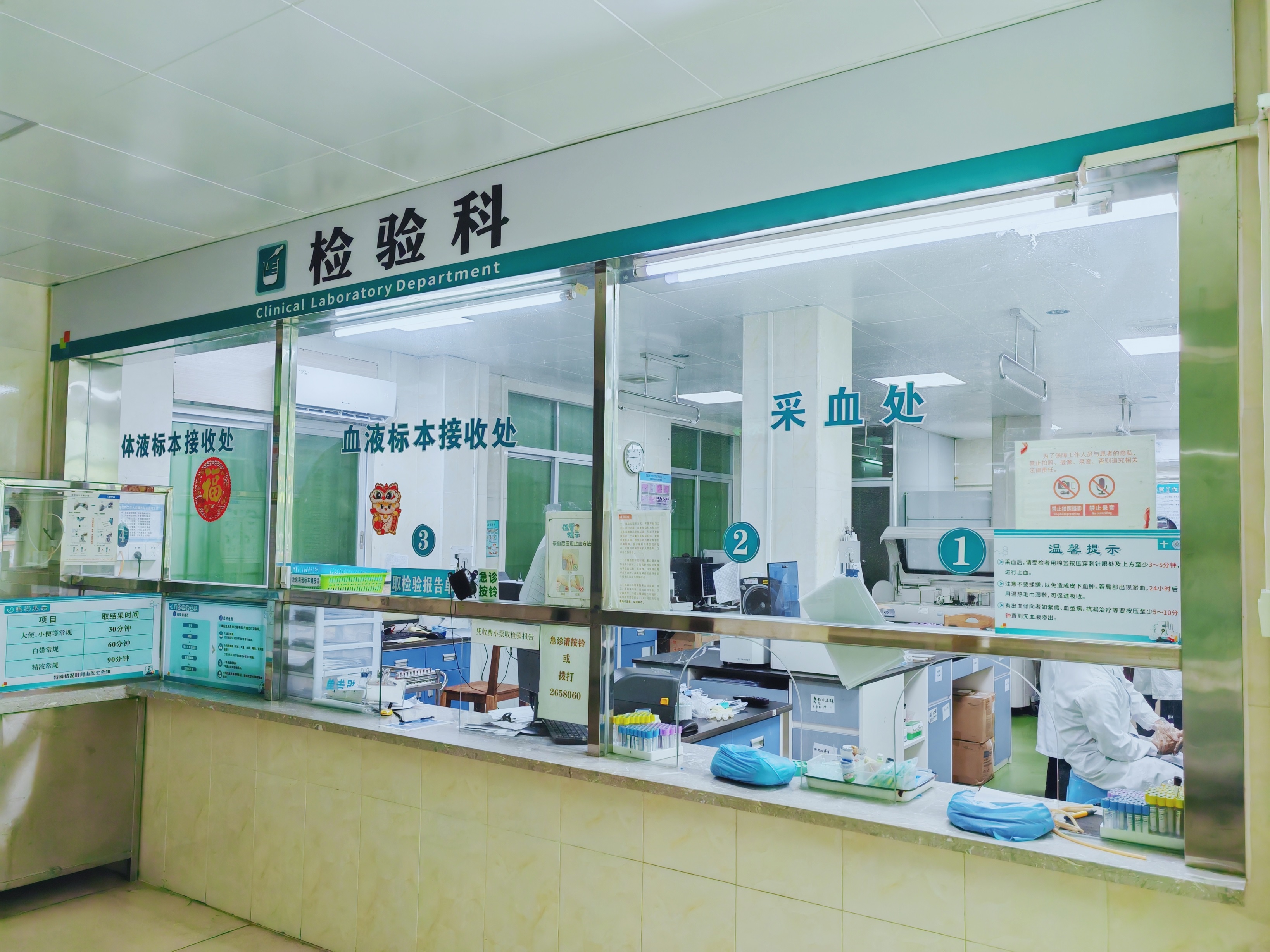 另外,检验科为满足临床及患者需求,与第三方检验机构合作进行医疗检验,开展了多项检测项目,包括:强制性椎炎、免疫球蛋白、补体、高血压四项、微量元素六项、唐氏综合症筛查、胰岛素自身抗体三项、自身免疫病三项、抗核抗体两项、抗 ENA 抗体六项、贫血四项,地中海贫血的筛查和分型、人乳头瘤病毒、液基薄层细胞学检测等。