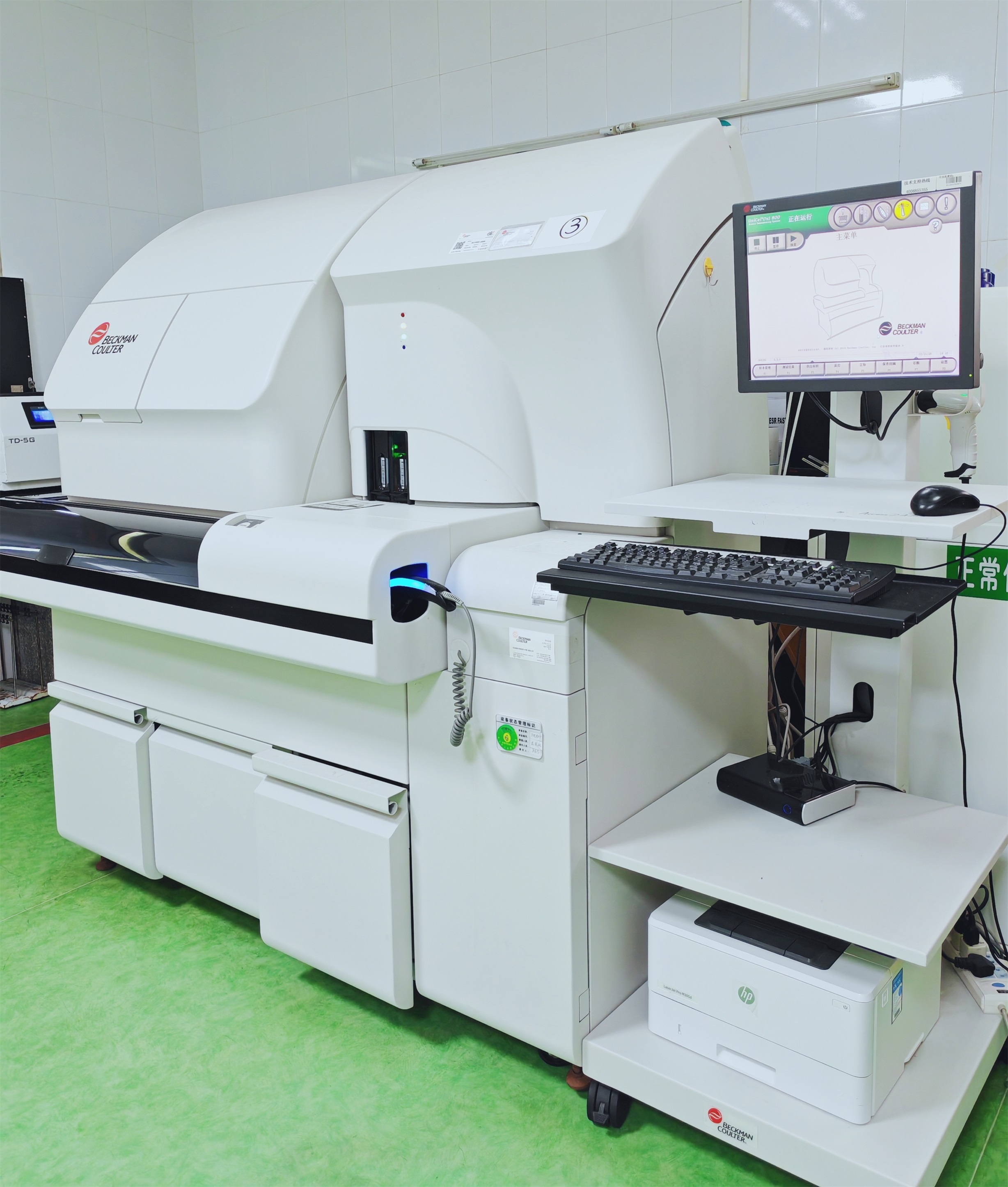 目前检验科拥有先进的检验仪器 20 余台:全自动生化分析仪两台、全自动化学发光分析仪四台,全自动血球分析仪三台,全自动尿沉渣分析仪两台、全自动大便分析仪两台、全自动血凝分析仪两台、血气分析仪一台、全自动化白带分析仪一台、半自动化核酸提取仪两台,半自动化基因扩增仪两台等。