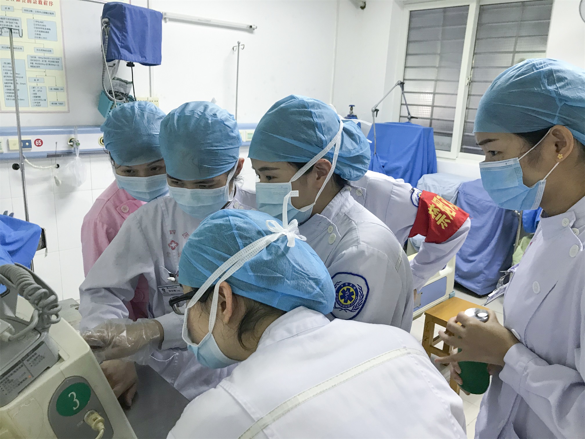 熟练掌握基础生命支持(BLS)操作、气管插管(经口)操作配合、急救止血包扎技术操作、颈椎损伤的固定与搬运操作等急救技能,静脉穿刺术、洗胃术、吸氧和吸痰等操作较突出,形成反应迅速、操作规范、流程快捷护理特色。