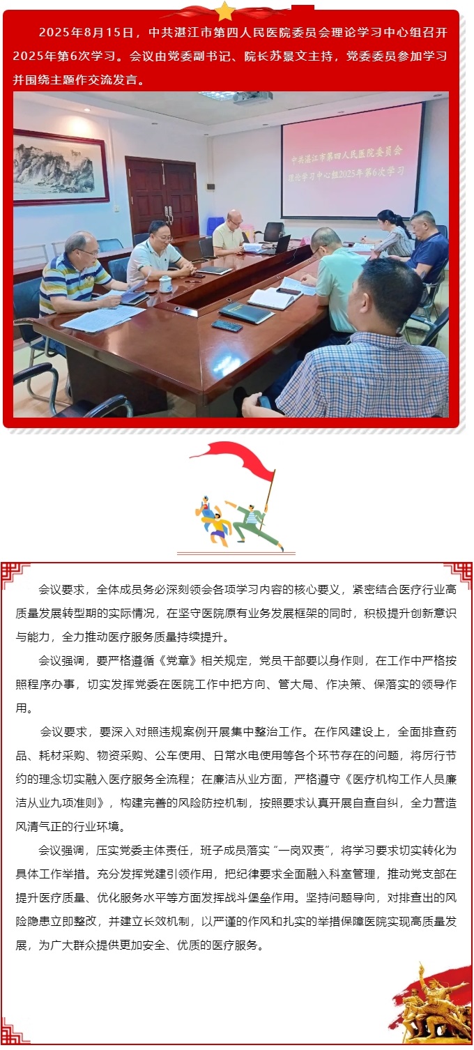 学思践悟,推动医院高质量发展——中共湛江市第四人民医院委员会2025年第6次理论学习会议