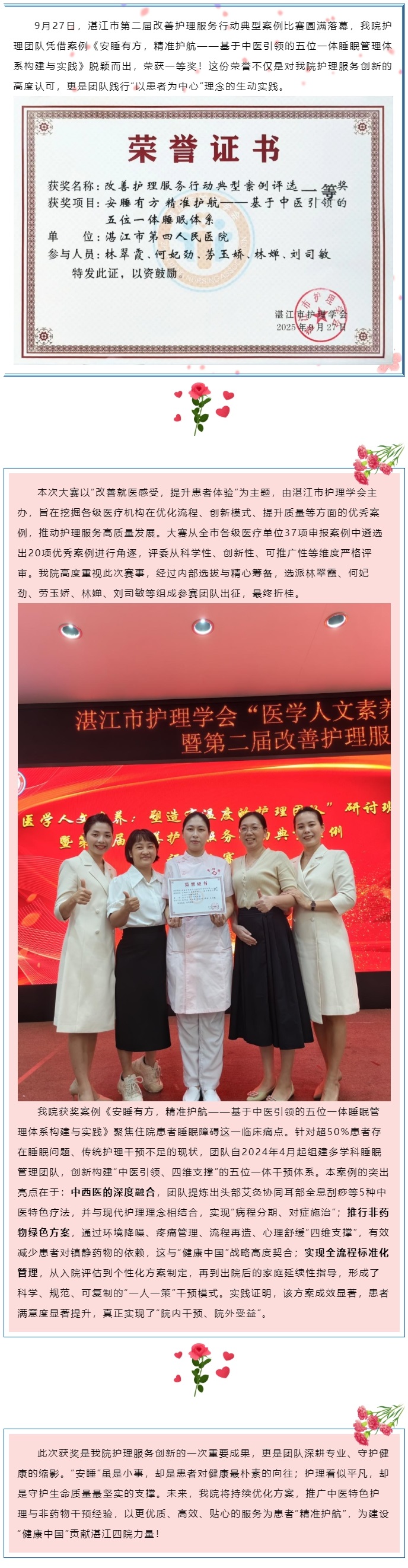 喜讯!我院《安睡有方 精准护航》斩获湛江市护理服务案例大赛一等奖!