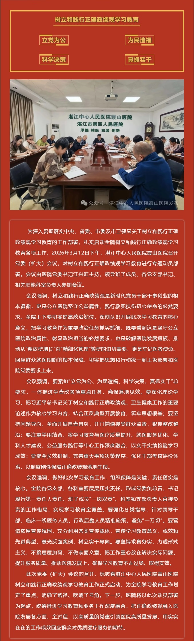 湛江中心人民医院霞山医院党委部署树立和践行正确政绩观学习教育工作