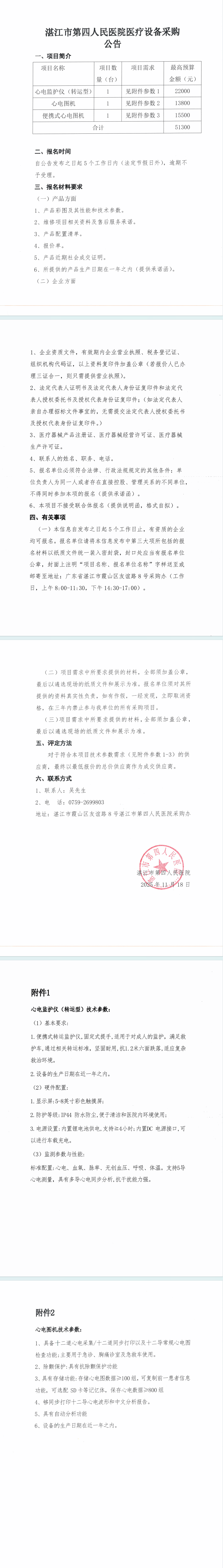 湛江市第四人民医院医疗设备采购公告