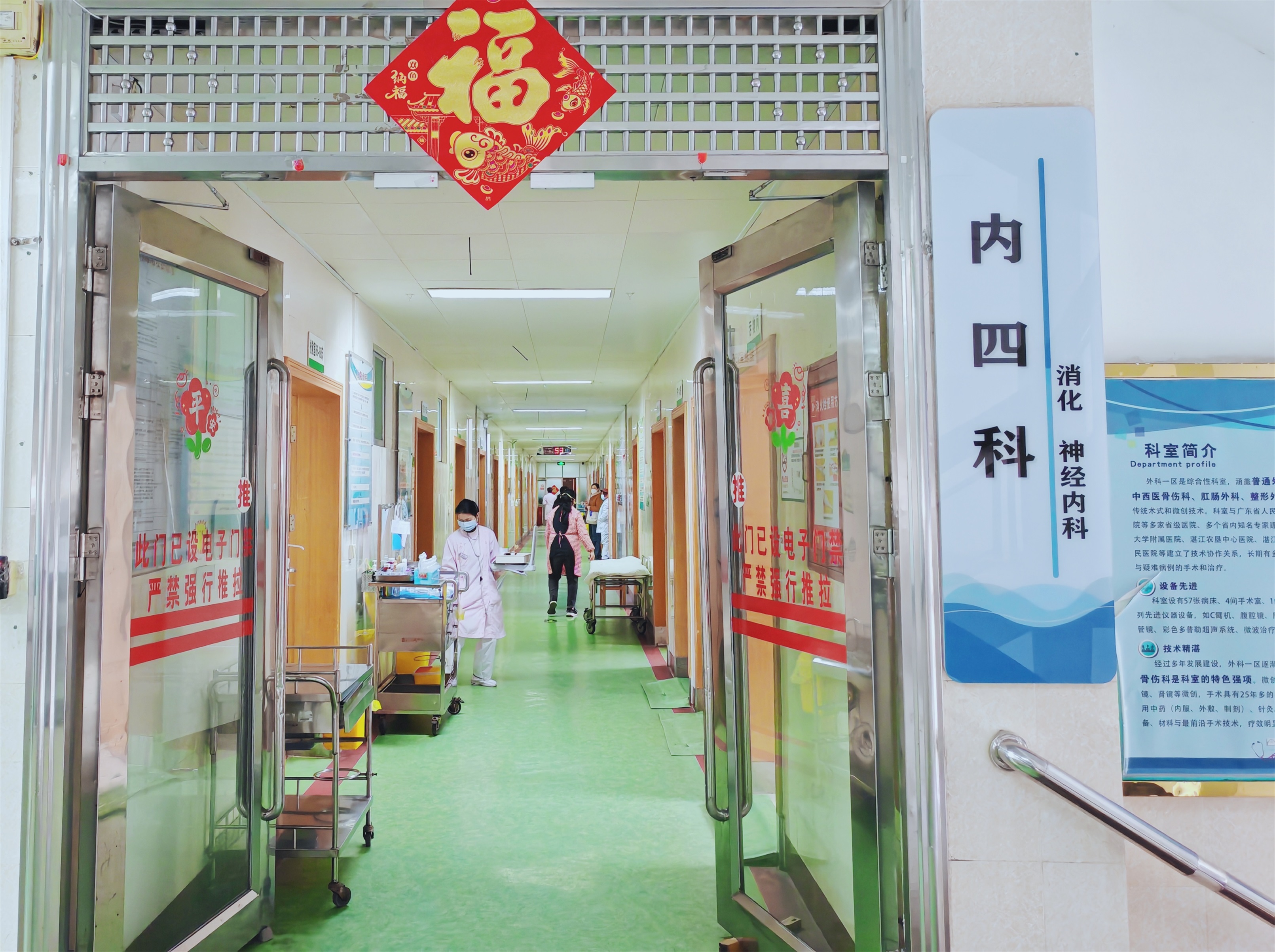 内四科是以消化内科、神经内科为主的综合性内科,科室设有配备齐全的单人、双人、三人病房,共有开放床位 58张。