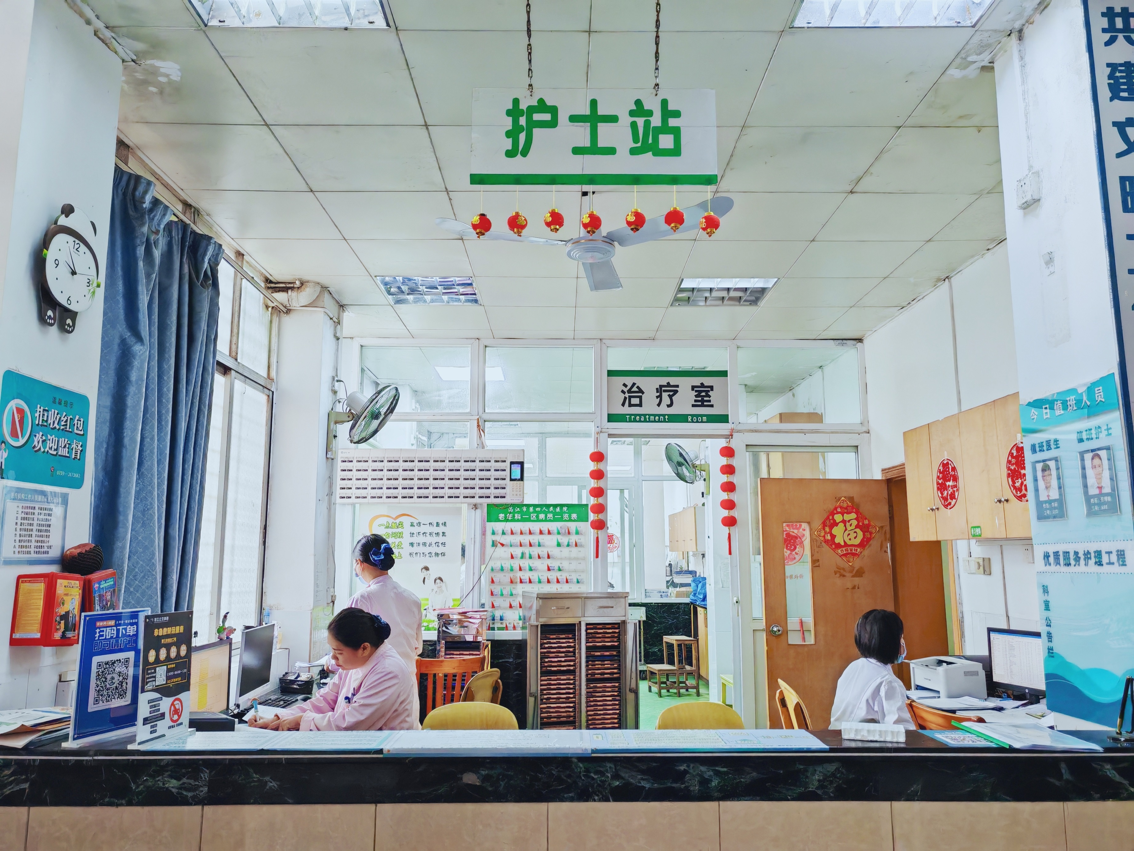 1.本中心医护技术过硬,资源充足,配比合理,实行 24小时值班制。老年科与康复医学科之间设有直通通道,为老年患者日常康复治疗提供便捷,形成康复-治疗一体化的诊疗模式。