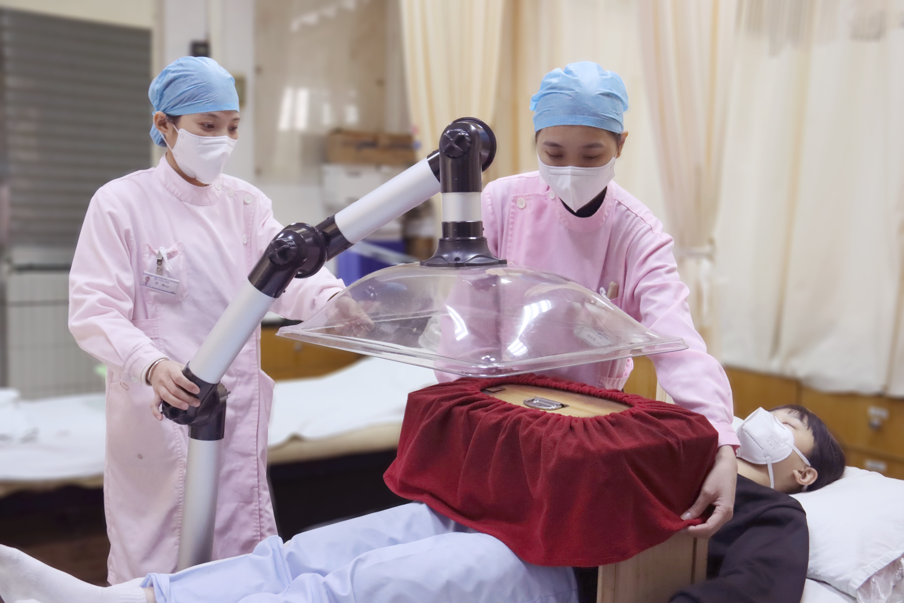 中医科配有中药熏药仪、电针仪、微波治疗机、中频治疗仪、TDP、拔罐、刮痧、多款灸具、颈椎牵引机等诊疗设备。