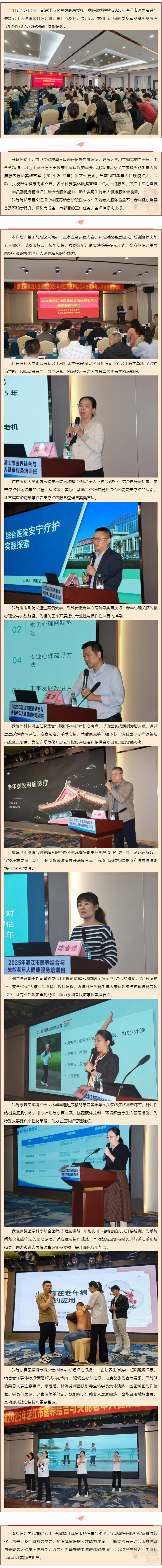 聚焦失能老人照护,提升基层服务能力——2025年湛江市医养结合专题培训班