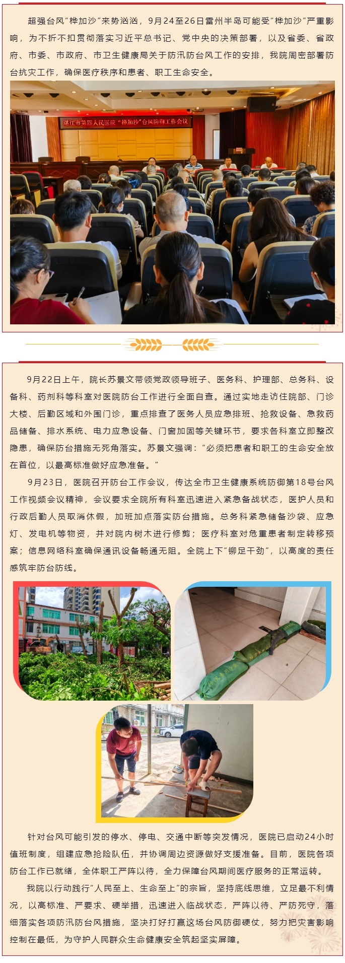 我院全力备战超强台风“桦加沙”